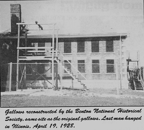 The Charlie Birger gang had planned the murder at Shady Rest, it's gang headquarters near Harrisburg. Charlie Birger was arrested, held in the Franklin County Jail in Benton, and brought to trial there. |
