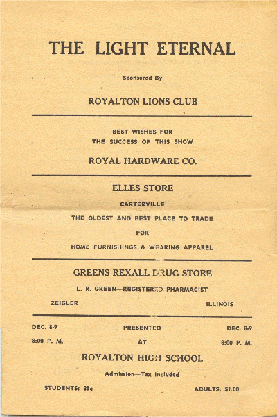 A Christmas Play sponsored by the Royalton Lions Club and held in the Royalton School Gymnasium on December 8th & 9th, 19??.